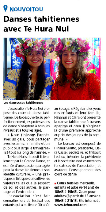 Journal de Vitré – Danse tahitienne avec Te Hura Nui Presse Journal de Vitré – Danse tahitienne avec Te Hura Nui